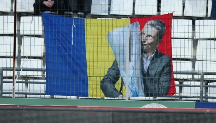 Πιο συγκεκριμένα στην απέναντι θύρα από τα επίσημα του σταδίου, είχε αναρτηθεί ένα πανό στο οποίο αποτυπώνονταν η σημαία της Ρουμανίας. Μέσα στο πλαίσιο ήταν ο Λουτσέσκου ο οποίος κρατούσε το τρόπαιο του πρωταθλήματος, το οποίο και φιλούσε. Επί της ουσίας προϊδέαζαν πως ο ΠΑΟΚ θα κατακτήσει το πρωτάθλημα που τόσο πολύ το θέλει, με τον Λουτσέσκου να βρίσκεται και δικαιολογημένα στο επίκεντρο.