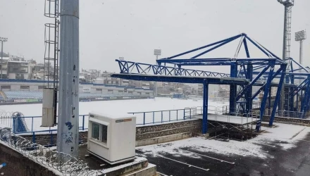 Το γήπεδο της Λαμίας έχει καλυφθεί από χιόνι αυτή τη στιγμή κι όπως είναι φυσικό δημιουργούνται ερωτηματικά για το αν θα γίνει η αναμέτρηση των δύο ομάδων στο πλαίσιο των ημιτελικών του Κυπέλλου.