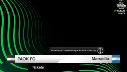 «Η ΠΑΕ ΠΑΟΚ ανακοινώνει πως για τεχνικούς λόγους η διάθεση των εισιτηρίων για τον αγώνα της Πέμπτης κόντρα στη Μαρσέιγ θα ξεκινήσει την Τρίτη (12.04) στις 12:00».