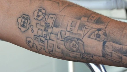 Ο Βραζιλιάνος μέσος έχει πολλά τατουάζ. Εντυπωσιάζουν αυτό στο μπράτσο με το πρόσωπο του Ιησού και στο χέρι του με τον Μίκι Μάους.