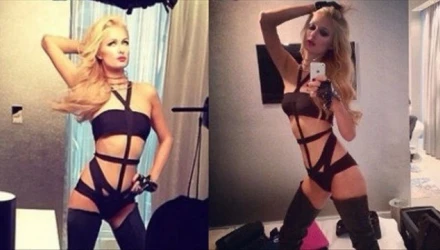 Φορώντας μόνο ένα μαύρο κορμάκι με έντονα κοψίματα και ψηλοτάκουνες μπότες, η Πάρις έβγαλε τον αισθησιασμό της στον φακό.
