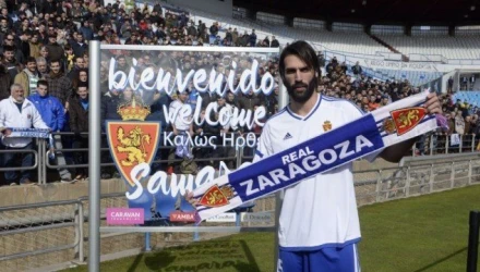 Με την επιγραφή bienvenido, το οποίο ήταν γραμμένο και στα ελληνικά (καλώς ήρθες) η Σαραγόσα καλωσόρισε τον Σαμαρά στην ομάδα με τον 31χρονο επιθετικό να δηλώνει ενθουσιασμένος και έτοιμος να βοηθήσει τη Σαραγόσα ως το τέλος της σεζόν.