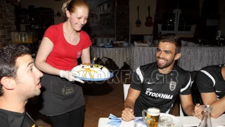 Δύο τούρτες έκαναν την εμφάνισή τους, και το πάρτι ξεκίνησε. Ήταν μια ευκαιρία για να ξεφύγουν οι παίκτες από την ένταση των συνεχόμενων προπονήσεων.