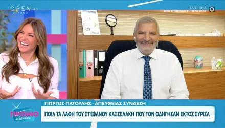 Μιλώντας το πρωί της Τρίτης (15/10), στην εκπομπή «Πρωινό Σου Σου», ο Γιώργος Πατούλης αναφέρθηκε στην τρέχουσα πολιτική κατάσταση, αλλά και στο «φαινόμενο» Στέφανος Κασσελάκης και στα λάθη που έχει κάνει, τα οποία του έθεσαν εκτός ΣΥΡΙΖΑ.