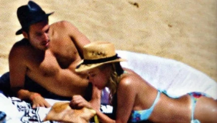 Η Δούκισσα μαυρισμένη και με εντυπωσιακό γαλαζοκίτρινο μπικίνι αφού απόλαυσε τις ευεργετικές ιδιότητες του θαλάσσιου μπάνιου ξάπλωσε δίπλα στον αγαπημένο της και επιδόθηκε σε τρυφερότητες δημοσίως αδιαφορώντας για τα αδιάκριτα βλέμματα των λουόμενων που την "κάρφωναν".
