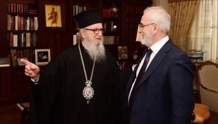 Οι δύο άνδρες συζήτησαν για αρκετή ώρα για θέματα που αφορούν τον ποντιακό ελληνισμό, την ομογένεια, την Ορθοδοξία και τους τρόπους που μπορεί να φανεί χρήσιμος ο ιδιοκτήτης της ΠΑΕ ΠΑΟΚ στην Αρχιεπισκοπή Αμερικής.