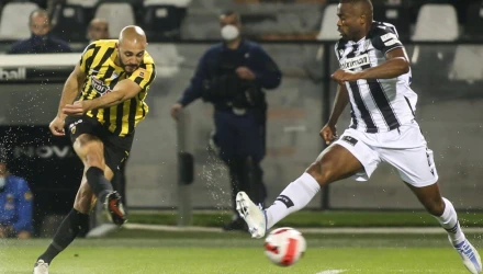 Η ΑΕΚ κατάφερε να πάρει προβάδισμα στην αναμέτρηση με τον ΠΑΟΚ στο 15ο λεπτό, με τους παίκτες του Σωκράτη Οφρυδόπουλου να συνεργάζονται όμορφα και τον Κριχόβιακ να στρώνει τη μπάλα στον Μαροκινό και εκείνος με σουτ στην κίνηση έκανε το 1-0.