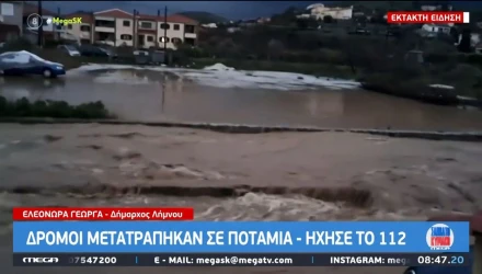 Στο μεταξύ, ποσότητες του νερού που έπεσε στη Λήμνο μέσα σε οκτώ ώρες είναι μεγαλύτερες από την πλημμύρα του Νοεμβρίου, με τις τοπικές Αρχές να εκτιμούν ότι μέσα σε οκτώ ώρες έπεσαν πάνω από 100 τόνοι νερού.