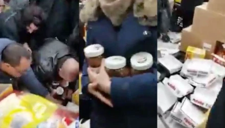 Πλάνα από βίντεο κατέγραψαν τριτοκοσμικές στιγμές χάους με δεκάδες πελάτες να τρέχουν να προλάβουν να πάρουν το προϊόν και το προσωπικό να προσπαθεί να τους ελέγξει.