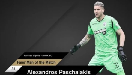 Τον Αλέξανδρο Πασχαλάκη, ανέδειξαν ως τον Fans Man of the Match, οι οπαδοί του ΠΑΟΚ για τον επαναληπτικό αγώνα Κυπέλλου με τον Αστέρα στην Τρίπολη.