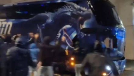 Τα έψαλλαν στην αποστολή της ομάδας για την απόδοσή τους και όπως φαίνεται στο βίντεο της πορτογαλικής «O'Jogo», κάποιος εκτόξευσε κι έναν πυρσό στο τζάμι του πούλμαν, καθώς οι οπαδοί συνέχιζαν το... κράξιμο.