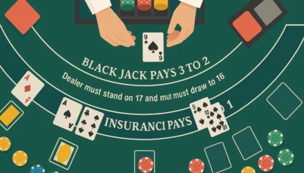 Εν συντομία, θα πρέπει να γνωρίζεις πως οι φιγούρες της τράπουλας ισούνται με τον αριθμό 10, ενώ ο άσσος λειτουργεί τόσο ως άσσος, όσο και ως έντεκα. Οι κινήσεις που μπορείς να κάνεις είναι, να τραβήξεις, να σταματήσεις, να διπλασιάσεις και να κάνεις split.