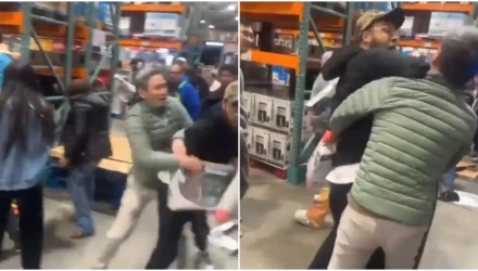 Σε ένα από τα βίντεο, φαίνεται πελάτης να προσπαθεί να αρπάξει ένα πακέτο, ενώ έχει γαντζωθεί πάνω σε έναν άλλον. Ξαφνικά, ο δεύτερος άντρας του ρίχνει αγκωνιά και μια γυναίκα του φωνάζει να σταματήσει. Άλλοι πελάτες ζητούσαν από τους υπεύθυνους του καταστήματος να καλέσουν την αστυνομία, αλλά αυτό δεν συνέβη. Τελικά, το θέμα λύθηκε μεταξύ των πελατών.