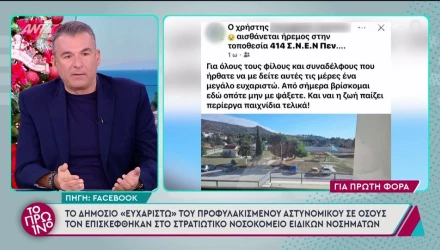Σε μια νέα ανάρτησή του που έφερε στη δημοσιότητα η εκπομπή «Το Πρωινό» του ΑΝΤ1 σημείωσε: