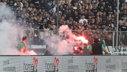 Μετά τα επεισόδια μεταξύ των φιλάθλων του Παναθηναϊκού και της αστυνομίας, αυτή τη φορά οι οπαδοί των «πρασίνων» με πυρσούς στα χέρια εισέβαλαν στο ταρτάν του γηπέδου και κατευθύνθηκαν στην μεριά των ΠΑΟΚτσήδων.