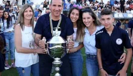Προπονητής του ο άλλοτε παίκτης του ΠΑΟΚ, Γιώτης Εγκωμίτης, που πανηγύρισε κι αυτός μαζί με την οικογένειά του την άνοδο στην πρώτη κατηγορία.