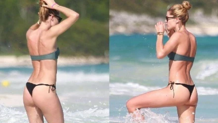 Ποιο κρύο; Η Ντάτσεν Κρόους άλλαξε το χρόνο στις παραλίες του Κανκούν και με το αποκαλυπτικό μαγιό της ανέβασε τη θερμοκρασία.