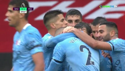 Στο ημίχρονο οι «πολίτες» είναι μπροστά με γκολ του Κάιλ Ουόκερ στο 28ο λεπτό.
