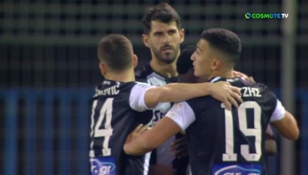 Στο 13ο λεπτό του παιχνιδιού μετά από εκτέλεση φάουλ από τα αριστερά του Κωνσταντέλια, η μπάλα πέρασε από όλη την άμυνα της Λαμίας έφτασε στην απέναντι πλευρά που ήταν ο Νάρεϊ που έκανε το σουτ, το τόπι βρήκε στα πόδια του Ολιβέιρα και κατέληξε στα δίχτυα.