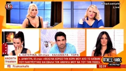 Η πεθερά που έκλεψε τον άντρα της κόρης της, επειδή αισθανόταν μόνη, η 33χρονη που τα έχει με τον πλούσιο θείο του κομμωτή άντρα της και θέλει να ζήσει μαζί του, η 35χρονη που θέλει να ξεφορτωθεί την πεθερά της και της πετάει ρούχα από το μπαλκόνι και η Βούλα που το παίζει θρήσκα, αλλά απατάει το σύζυγό της κάνοντας ολονυχτίες με τον πρώην, είναι μερικά απ’ τα πρόσωπα της διπλανής πόρτας που έχουμε απολαύσει στην εκπομπή "Φτιάξε καφέ να στα πω".