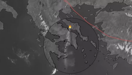 Όπως φαίνεται μέσα από τη δορυφορική εικόνα της EUMETSAT ο πυκνός καπνός αργά το απόγευμα (19:00) της Τετάρτης 31 Ιουλίου 2024 είχε ήδη μεταφερθεί πάνω από το Μυρτώο Πέλαγος, διανύοντας απόσταση μεγαλύτερη των 150 km.