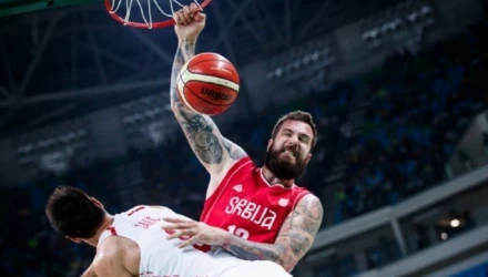 Ο Μίροσλαβ Ραντούλιτσα πραγματοποίησε ένα εντυπωσιακό κάρφωμα μπροστά στον Ντάριο Σάριτς, κατά τη διάρκεια του αγώνα της Σερβίας με την Κροατία για το Ολυμπιακό τουρνουά μπάσκετ.