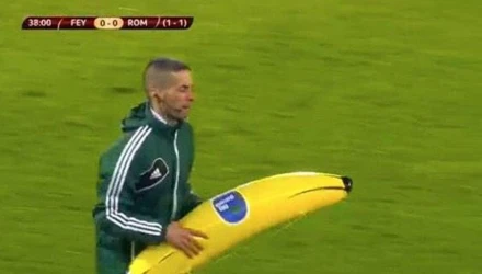 Κάποιοι ανεγκέφαλοι φίλοι των Ολλανδών πέταξαν μία μεγάλη πλαστική μπανάνα στον ποδοσφαιριστή της Ρόμα και το ματς διακόπηκε για λίγα λεπτά. Θεωρείται δεδομένο ότι ο πέλεκυς της UEFA θα πέσει πολύ βαρύς στην Φέγενορντ, δεδομένου είναι αμείλικτη σε θέματα ρατσισμού.