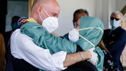 Φορώντας μια χειρουργική μάσκα, γάντια μίας χρήσης και ειδικά παπούτσια για την προστασία από τον κορωνοϊό, η νεαρή Ιταλίδα, Σίλβια Ρομάνο, επέστρεψε στην πατρίδα της την Κυριακή (10/5) μετά από 18 μήνες ως όμηρος στην ανατολική Αφρική. Με την άφιξή της στο αεροδρόμιο της Ρώμης κατέβασε τη μάσκα της για λίγο για να χαμογελάσει. Αγκάλιασε τη μητέρα της και τα άλλα μέλη της οικογένειας της και χαιρέτησε με τους... αγκώνες τον υπουργό Εξωτερικών, Λουίτζι Ντι Μάιο.