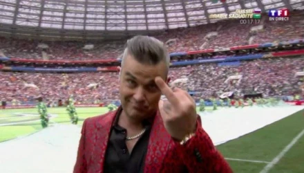 Ο Ρόμπι Γουίλιαμς τραγουδούσε στην έναρξη του Παγκοσμίου Κυπέλλου της Ρωσίας και δεν δίστασε να υψώσει το μεσαίο δάκτυλό του μπροστά στην κάμερα!