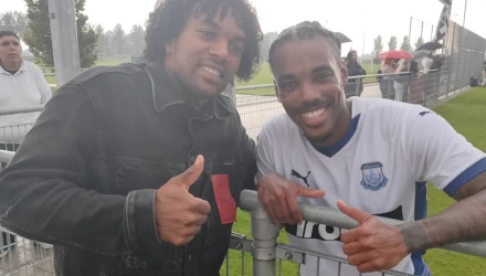 O Γκάρι Ροντρίγκες με τον Κώστα Πετρωτό έξω από την είσοδο των αποδυτηρίων του Nivo-Sparta