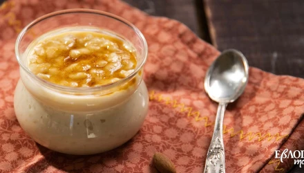 Ρυζόγαλο με ΕβΛΟΓΗΜΕΝΟ ρόφημα αμυγδάλου και καραμέλα
