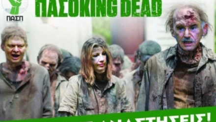 Οι "δημιουργοί" της αφίσας εμπνεύστηκαν από την ξένη σειρά «The Walking Dead», που έχουν παραφράσει ως «ΠΑΣΟΚing Dead».