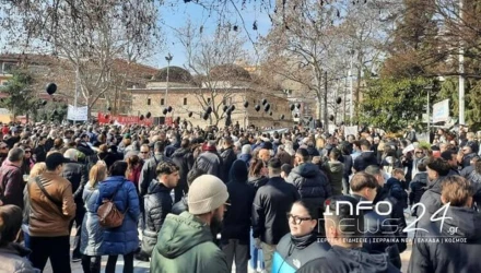 Πλήθος κόσμου συγκεντρώθηκε από νωρίς στην κεντρική πλατεία των Σερρών, ζητώντας δικαιοσύνη, δύο χρόνια μετά από την τραγωδία των Τεμπών.