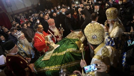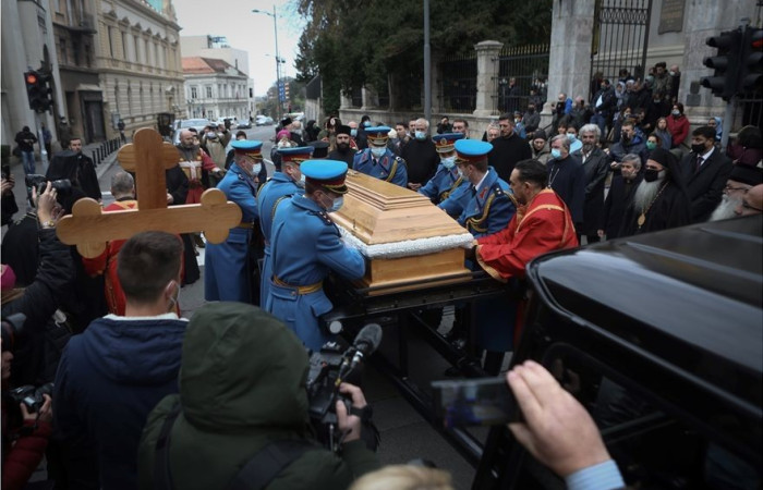 Σήμερα το πρωί τελέστηκε λειτουργία στον καθεδρικό ναό των Αρχαγγέλων με τν συμμετοχή πολλών ιεραρχών της Σερβικής Ορθόδοξης Εκκλησίας και την παρουσία εκατοντάδων πιστών, εντός και εκτός του ναού, λίγοι εκ των οποίων φορούσαν μάσκα.