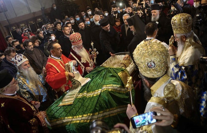 Ο ένας πάνω στον άλλο είναι πιστοί και κληρικοί σήμερα στο Βελιγράδι, στον ναό όπου εκτίθεται σε λαϊκό προσκύνημα το σκήνωμα του Πατριάρχη των Σέρβων Ειρηναίου, ο οποίος μάλιστα απεβίωσε από επιπλοκές του κορωνοϊού!