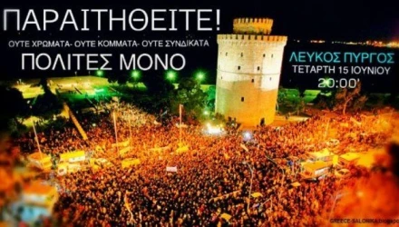 Η συγκέντρωση θα πραγματοποιηθεί την Τετάρτη 15 Ιουνίου, στις 20.00, στον Λευκό Πύργο ενώ την ίδια ώρα θα γίνει και στην πλατεία Συντάγματος στην Αθήνα.