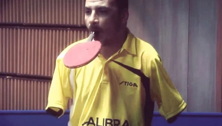 Εκείνος όμως ήταν αποφασισμένος να κάνει τα πάντα για να παίξει πινγκ-πονγκ. «Αγαπούσα το πινγκ πονγκ. Τρία χρόνια μετά το ατύχημα μου ήθελα να παίξω ξανά και δοκίμασα κρατώντας την ρακέτα με τη μασχάλη μου, αλλά δεν τα κατάφερα. Αφού δοκίμασα και άλλες εκδοχές, κατάφερα τελικά να παίζω με το στόμα μου.» Μάλιστα, για να κάνει σερβίς σηκώνει το μπαλάκι με το πόδι. Η ακρίβεια και η δύναμή του έχουν καταπλήξει μερικούς από τους καλύτερους παίκτες πινγκ πονγκ στον κόσμο. Η εικόνα μιλάει από μόνη της...