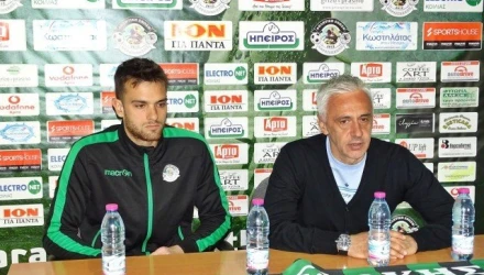 Ο τερματοφύλακας του Καραϊσκάκη, Ηλίας Μέλκας και πρώην γκολκίπερ του Ηρακλή, εκπροσώπησε τους συμπαίκτες του στη συνέντευξη Τύπου.