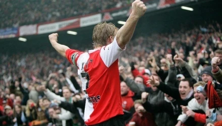 Ο Ντιρκ Κάιτ εκτελεί το πέναλτι στον αγώνα της Φέγιενορντ με την Ουτρέχτη, σκοράρει και τρέχει να πανηγυρίσει μπροστά σε φιλάθλους και φωτογράφους προκαλώντας... χαμό.