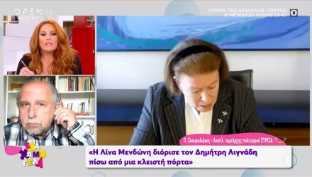 Ο κ. Σκουρολιάκος απάντησε στον λόγο που η κ. Μενδώνη αναφέρθηκε στον ίδιο: «Είχα ρωτήσει πώς μοιράστηκαν τα χρήματα από το “Όλη η Ελλάδα ένας πολιτισμός”, χωρίς να δεχτεί προτάσεις. Τότε με εγκάλεσε ότι αμφισβητώ το ήθος του κ. Λιγνάδη. Το social βρήκαν την ερώτηση, παίχτηκε ξανά τώρα και αναγκάστηκε να απαντήσει και σε αυτό».
