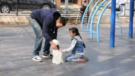Ευγενικός και χαμογελαστός τα χαιρετάει και τα ρωτάει αν τους αρέσουν τα σκυλιά. Και τα τρία παιδιά όχι μόνο απαντάνε θετικά, αλλά πλησιάζουν τον Τζόι και το σκυλί του, αψηφώντας κάθε προηγούμενη συμβουλή των γονιών τους.