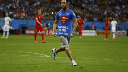 Πάνω στην μπλούζα του ανέγραφε το σύνθημα «σώστε τα παιδιά στις φαβέλες» και προσπάθησε να το επιδείξει εκεί που βρίσκονταν οι τηλεοπτικές κάμερες. Και παρότι η ΦΙΦΑ έχει απαγορεύσει τέτοιου είδους ενέργειες να κερδίζουν τηλεοπτικό χρόνο, η εικόνα του νεαρού φιλάθλου «κυκλοφόρησε» άμεσα στο διαδίκτυο. Βέβαια η παρουσία του ατον αγωνιστικό χώρο διήρκησε κάτι λιγότερο από μισό λεπτό καθώς αμέσως τον έπιασαν οι φύλακες του σταδίου.