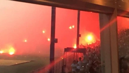 Με τη λήξη του αγώνα οπαδοί των δυο ομάδων μπήκαν στον αγωνιστικό χώρο του Τσιρείου πετώντας φωτοβολίδες και αντικείμενα μεταξύ τους και το χορτάρι του γηπέδου μετατράπηκε σε ρινγκ.