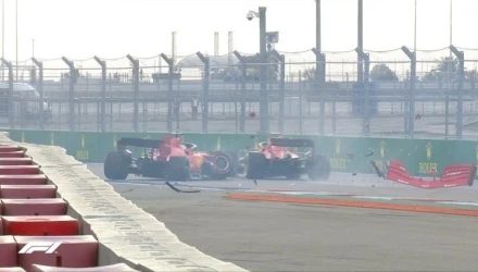 Από την πρόσκρουση, το διαλυμένο αυτοκίνητο του Φέτελ επέστρεψε μερικώς στην πίστα και ο Σαρλ Λεκλέρ που ακολουθούσε απέφυγε κυριολεκτικά στο «τσακ» τη σύγκρουση με τον teammate του.