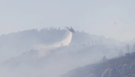 Στην κατάσβεση της φωτιάς επιχειρούν 26 πυροσβέστες με μία ομάδα πεζοπόρου τμήματος της 7ης ΕΜΟΔΕ, 9 οχήματα, 3 αεροσκάφη και ένα ελικόπτερο.