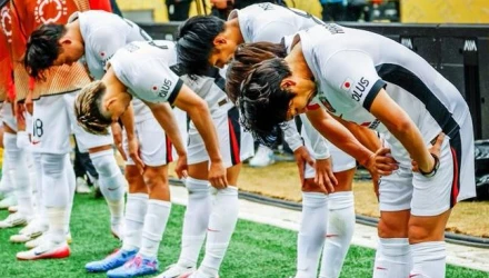 Z jednej strony piękna scenka, bo piłkarze Urawy dziękują swoim kibicom w niecodzienny dla nas sposób, z drugiej- są przybici bo odpadają z turnieju, choć nie zabrakło im wiele do szczęścia