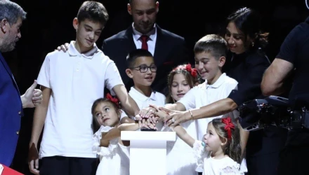 Ο Βασίλης Σπανούλης πήρε το λόγο κατά τη διάρκεια της βράβευσής του από τον Ολυμπιακό και στο πλαίσιο της συγκινητικής ομιλίας του μίλησε για τη σύζυγό του, Ολυμπία Χοψονίδου, λέγοντας της ευχαριστώ για την οικογένεια που του χάρισε και τη στήριξη που του πρόσφερε.