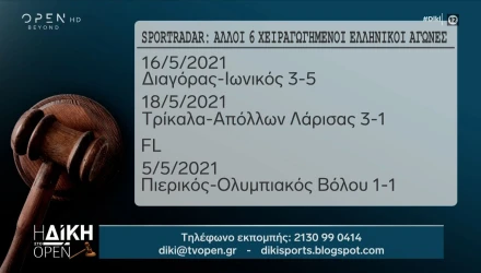 Η εταιρία ανίχνευσης στοιχηματικής απάτης Sportradar, έστειλε στην ΕΠΟ άλλα 6 ματς, τα οποία χαρακτηρίζει χειραγωγημένα.