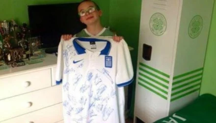 Όπως είχε δεσμευτεί λοιπόν ο αγαπημένος του, Γιώργος Σαμαράς, ο μικρός Jay θα έπαιρνε ως δώρο για την υποστήριξή στο αντιπροσωπευτικό μας συγκρότημα μια φανέλα υπογεγραμμένη από τον ίδιο και τους συμπαίκτες του.