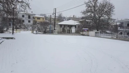 Η χιονόπτωση δεν είναι ιδιαίτερα ισχυρή και δεν έχουν δημιουργηθεί προβλήματα, ωστόσο σπίτια και χωράφια έχουν καλυφθεί από το χιόνι.
